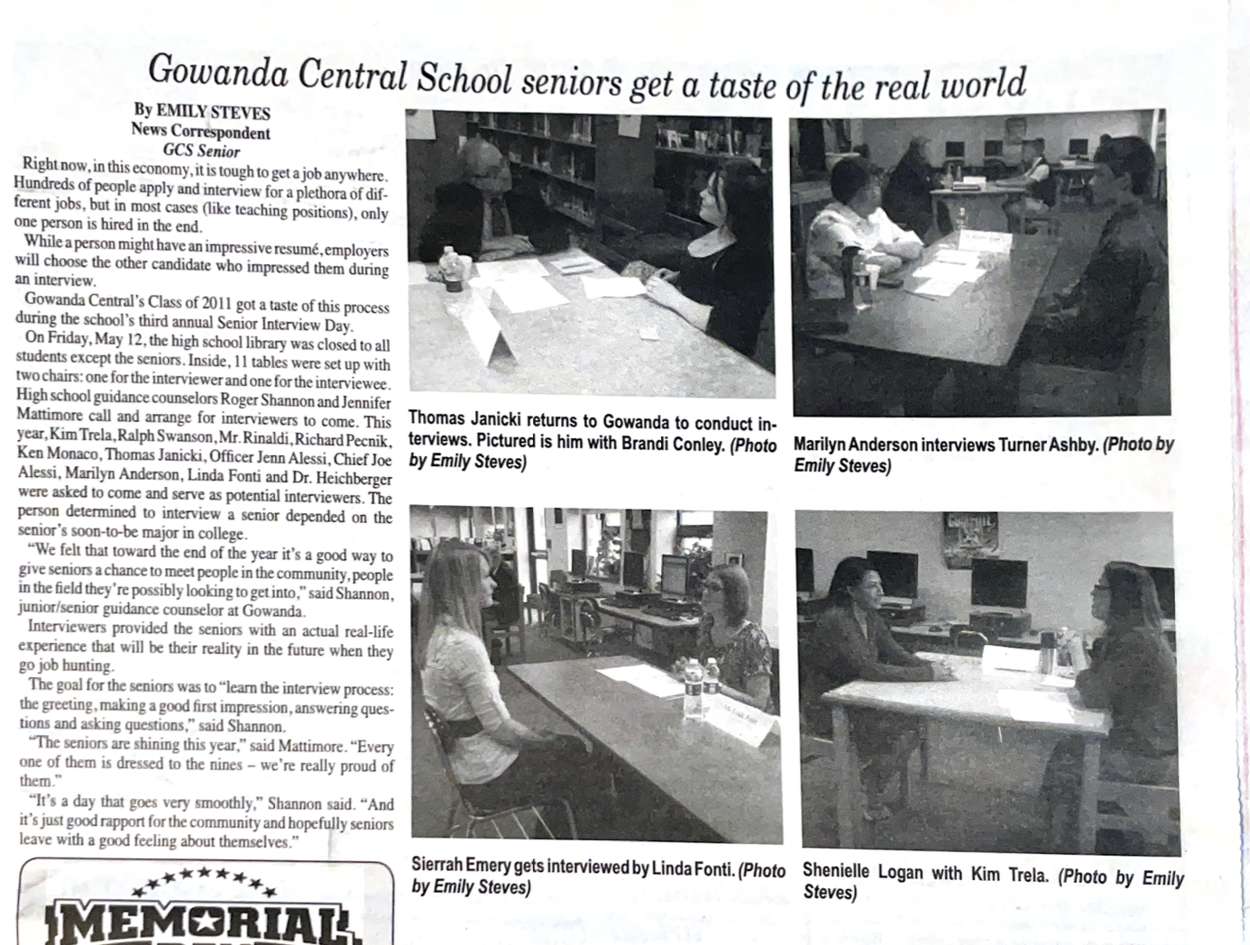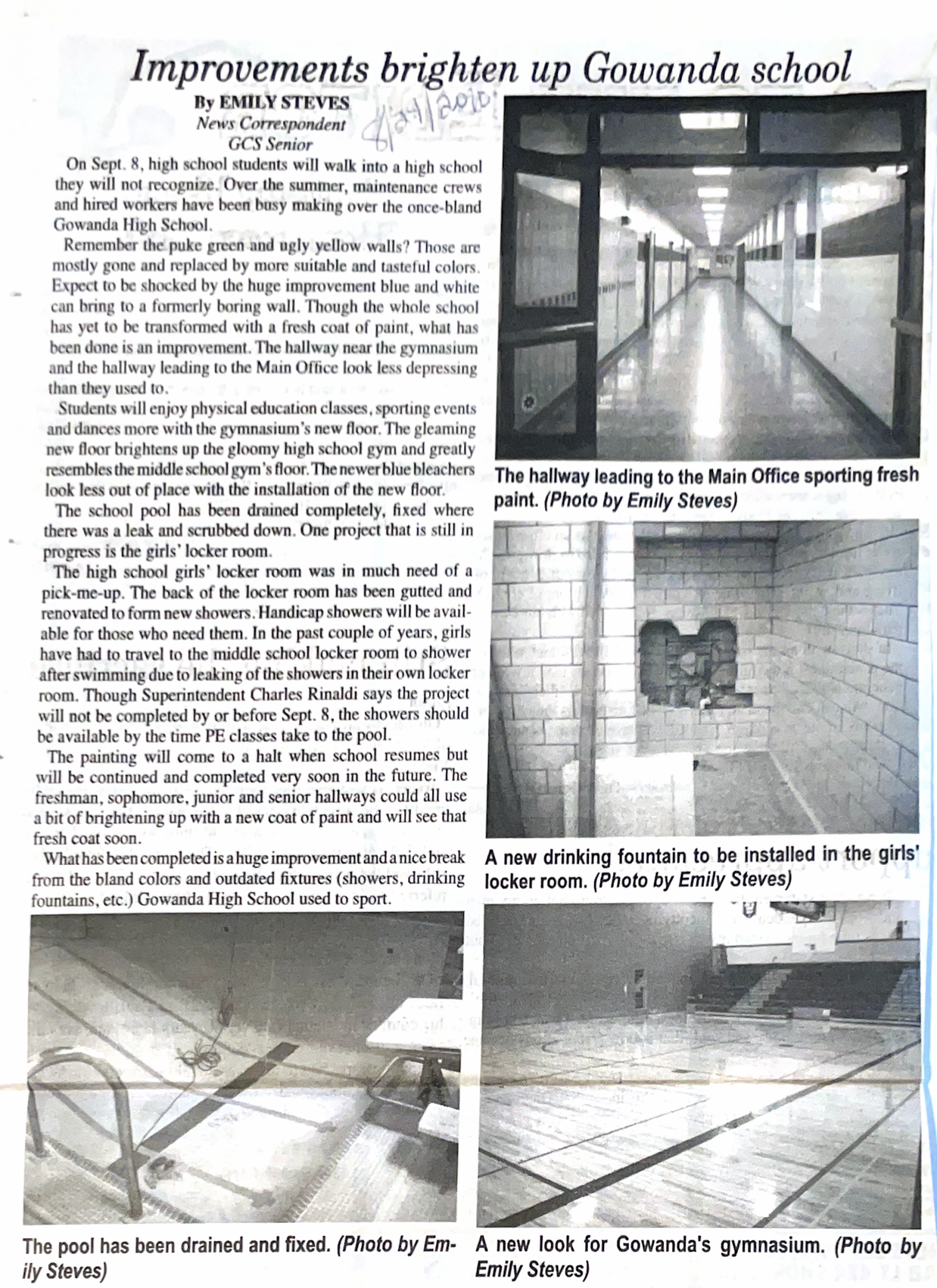 My job in high school was to write for the local weekly paper, The Gowanda News. I contributed stories and photographs nearly every week –– the editor saw my work in The Buffalo News and wanted to encourage teen readership in the area. My stories spanned trivial topics like local talent shows and high-school musicals and plays to topics taxpayers cared about, like improvements being made at my high school.